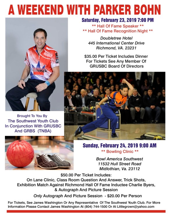 Mark Your Calendar! A Weekend With Parker Bohn! Image Posted on January 20, 2019 by roabowling Share this:Share Click to email a link to a friend (Opens in new window) Email Click to print (Opens in new window) Print Click to share on X (Opens in new window) X Click to share on Facebook (Opens in new window) Facebook Like Loading... Related